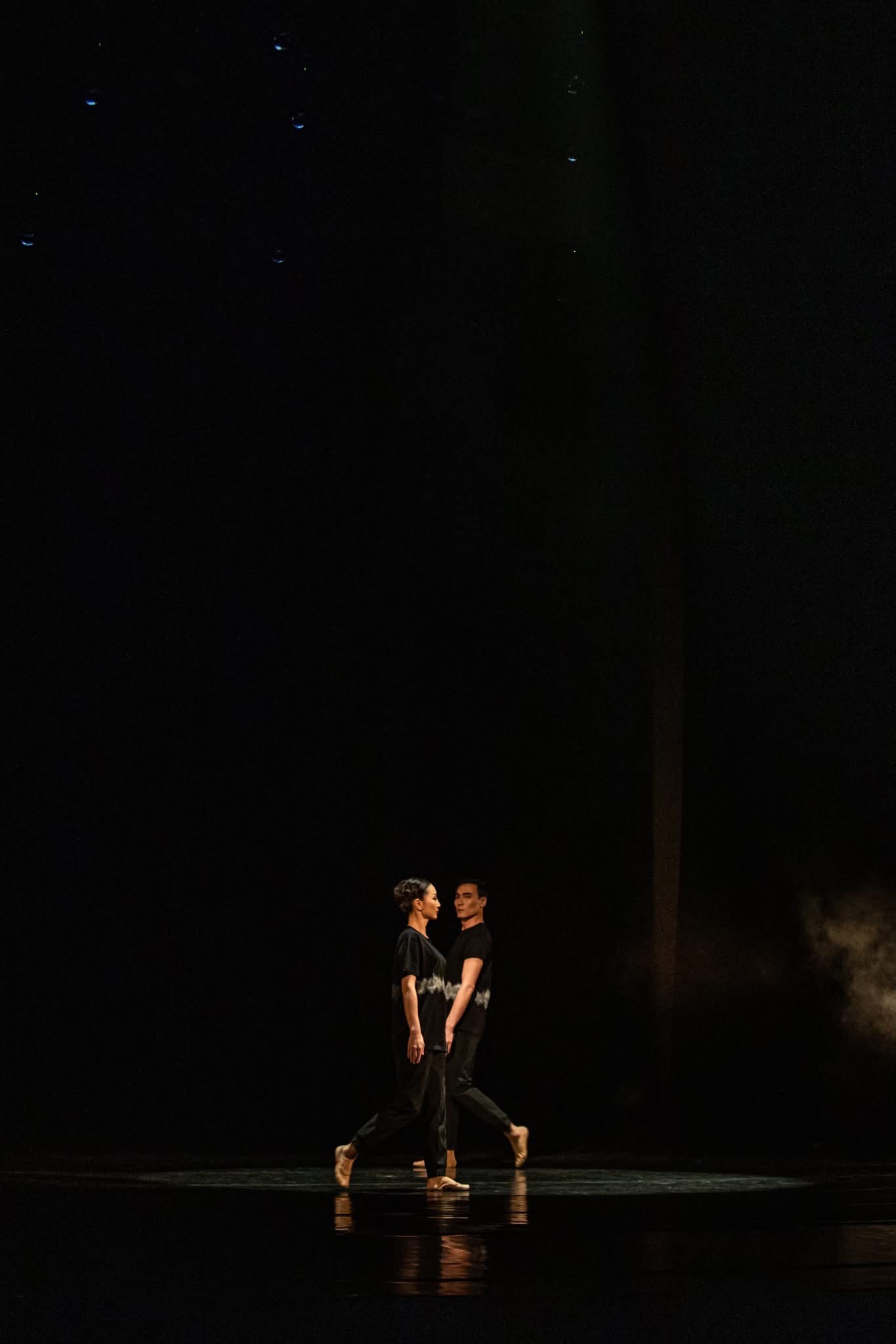 The circular movements invite viewers into a contemplative, almost meditative stateāa rare moment of collective stillness in our hectic world. Beyond its aesthetic dimension, 'ORBITING' carries profound social resonance: in an era marked by division and polarization, the dance envisions a delicate equilibrium that must be continuously recalibrated through mutual awareness and respect. It offers a vision of togetherness that doesn't demand uniformity, but rather celebrates the dynamic harmony possible when diverse elements find their orbit around common centers.
